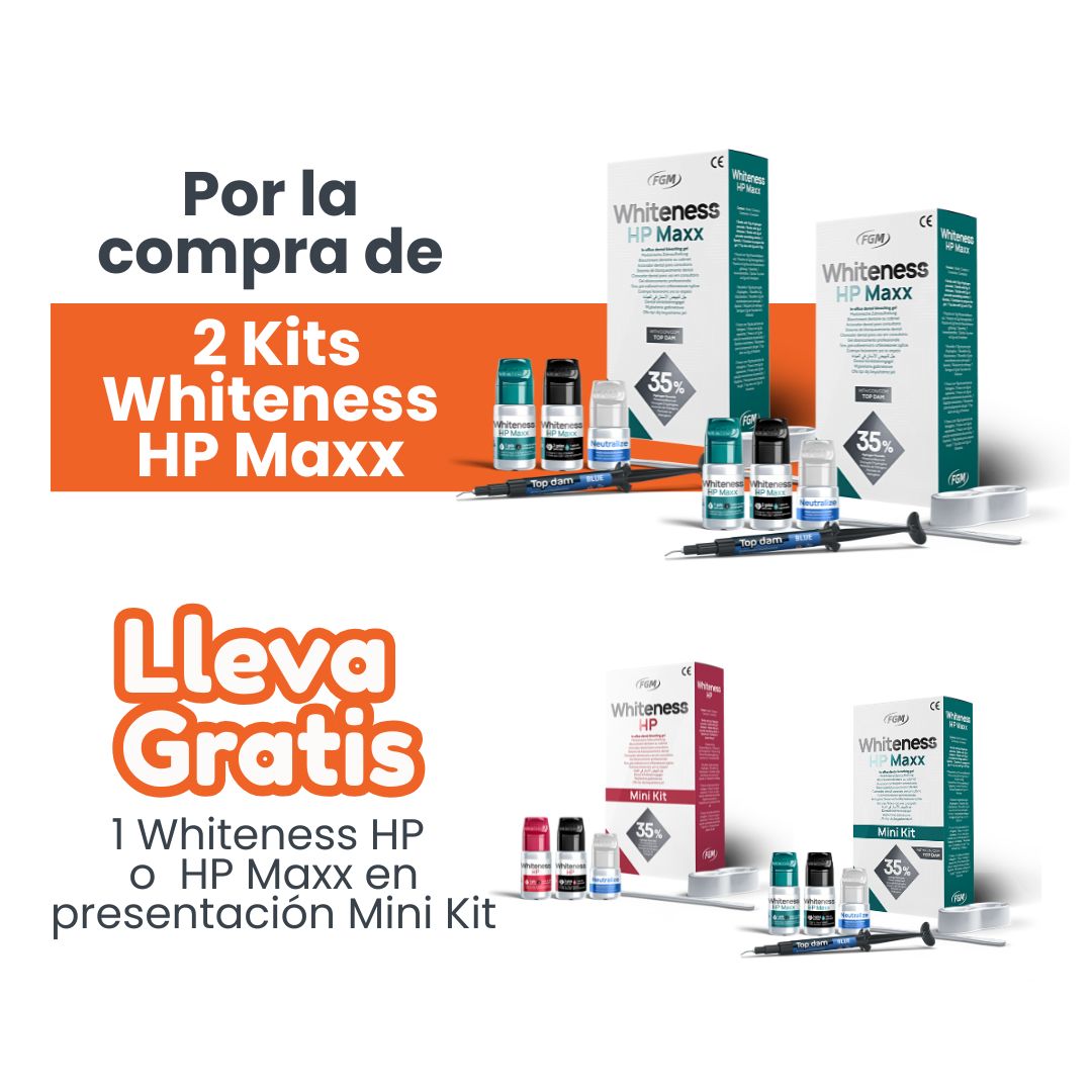 Compra 2 Kits Whiteness HP Maxx y Lleva GRATIS 1 Whiteness HP o HP Maxx en presentación Mini Kit