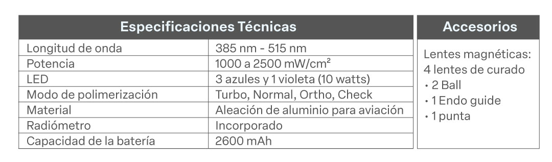 •Lentes magnéticas para curado puntual.
